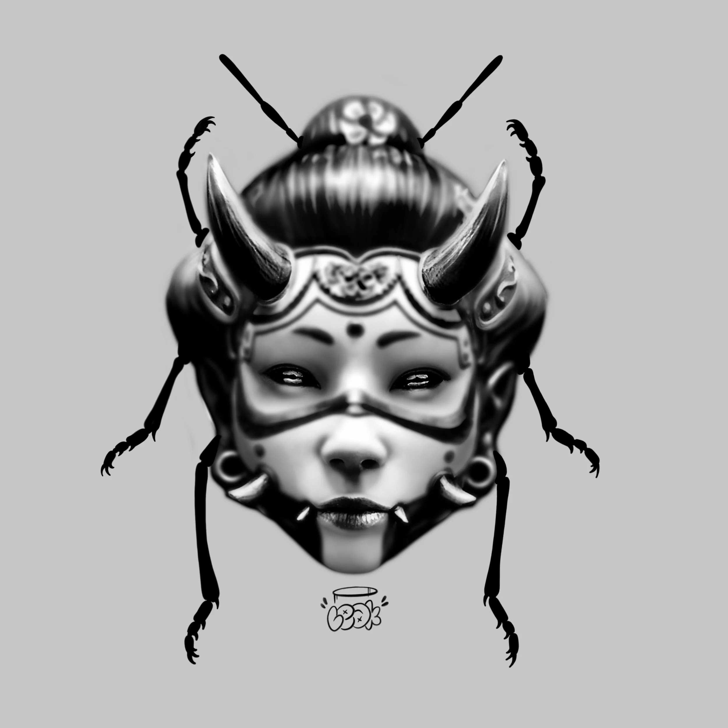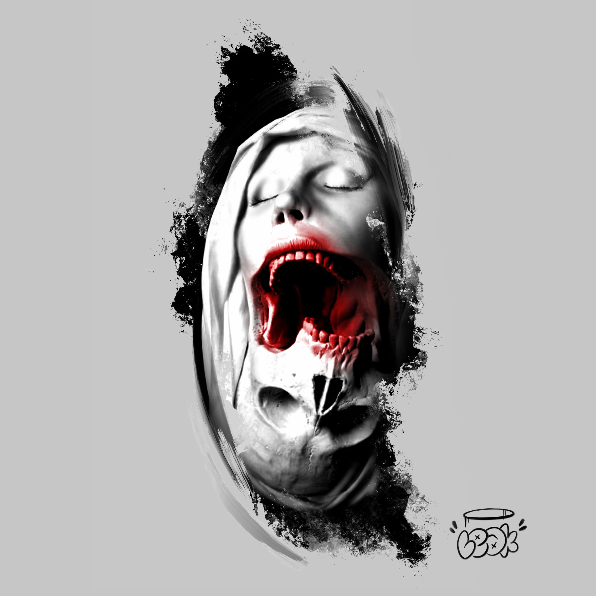 I love to combine artistic aspects, like behaviors of different paints and organic textures, with realism themes, like feminine faces, to create unique forms of visual interest.